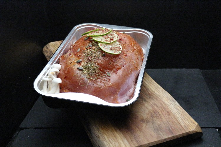 RAUWE filet van de kalkoen gevuld met vulling (geen volledige kalkoen): kalkoengehakt, truffel, champignon, sjalot, cognac, pompoenpit en veenbes. Vanaf 4 personen (300gr/p)